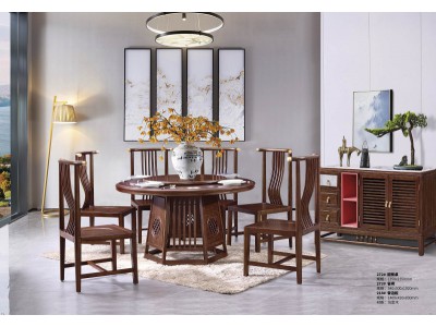 華軒新中式烏金木圓餐桌272#、餐椅273#、餐邊柜218#