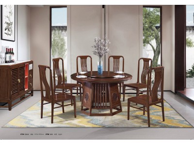 華軒新中式烏金木圓餐桌272#、餐椅278#
