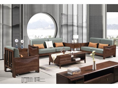 華軒新中式烏金木1+2+3沙發311#、方茶幾232#、方茶幾137#