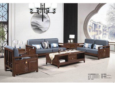 華軒新中式烏金木1+2+3沙發317#、方茶幾232#、長茶幾233#