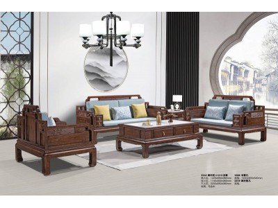 華軒新中式烏金木1+2+3沙發321#、長茶幾338#、四方茶幾337#
