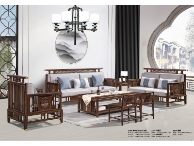 華軒新中式烏金木1+2+3沙發(fā)319#、長茶幾336#、副椅387#