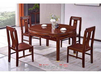 長城新中式烏金木餐桌W-1023#、餐椅W0012#