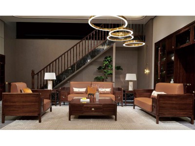 昌龍禾運新中式烏金木1-203#沙發(皮)