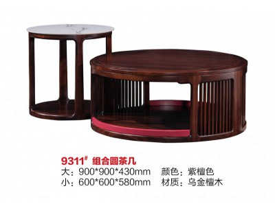 百福源康新中式烏金檀木組合圓茶幾9311#