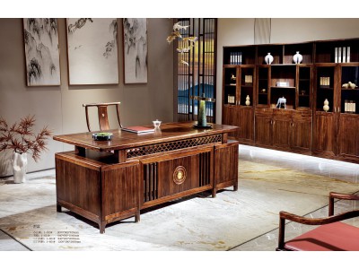 昌龍禾運新中式烏金木辦公桌1-623#、書椅1-621#、二門書柜1-601#、三門書柜1-601#