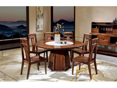 昌龍禾運(yùn)新中式烏金木巖板圓桌1-509#、餐椅1-517#