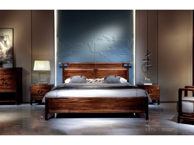 昌龍禾運新中式烏金木床1-1011#、床頭柜1-112#