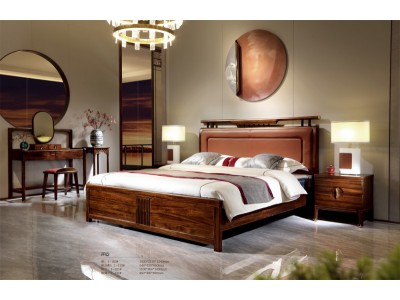 昌龍禾運新中式烏金木床1-103#、床頭柜1-112#、妝臺1-121#、妝凳1-131#