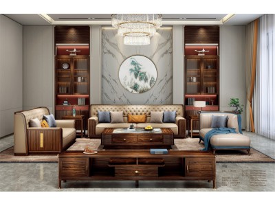 昌龍禾運新中式烏金木沙發1-2017#、貴妃沙發1-368#、長茶幾1-2231#、角幾1-226(實木)#、電視柜1-233#