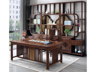 衛(wèi)府里新中式烏金木SZ602書(shū)桌、WZY626主椅、BGJ626博古架