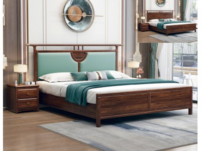 衛府里新中式烏金木C616床軟靠、CG606床頭柜