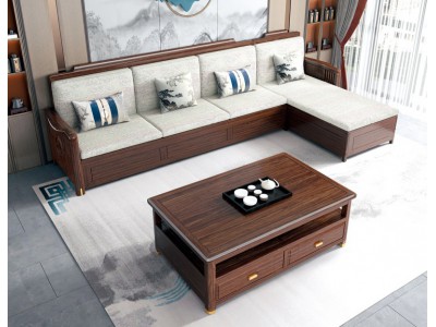 衛府里新中式烏金木SF616轉角沙發、KT605茶幾