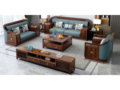 衛府里新中式烏金木SF619沙發、KT609大方幾、KT606方幾、KG609電視柜